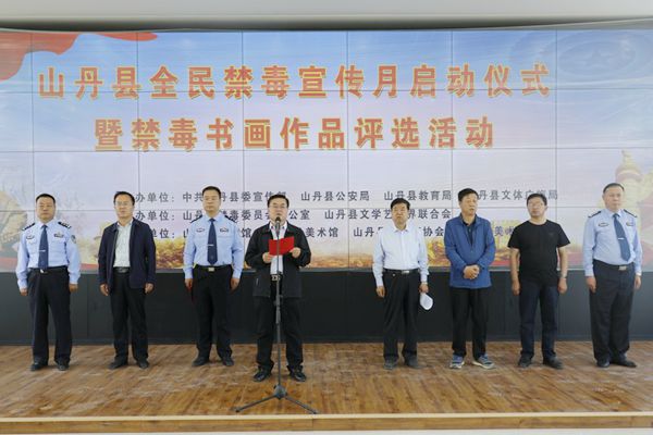 甘肃禁毒网讯(通讯员 张琴 陈悦西)为推动毒品预防教育工作向纵深发展,持续提高全民禁毒意识,激励广大人民群众参与禁毒斗争,不断掀起禁毒宣传工作高潮,6月3日,在虎门销烟181周年纪念日之际,张掖市山丹县举行全民禁毒宣传月启动仪式暨禁毒宣传书画作品评选活动。县政府副县长、县公安局党委书记、局长张勇主持活动,县委常委、县委政法委书记程新民,县人大常委会副主任杨依福及县禁毒委各成员单位负责同志、联络员、公安民警、清泉镇禁毒专干、禁毒志愿者参加。