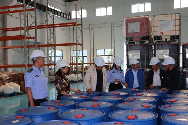 检查组先后到生产车间、原料仓库、监控室等,通过实地查看、调阅台账、座谈交流等方式,对企业易制毒化学品安全管理、规范使用等方面情况进行了全面核查,并就存在的问题提出了整改要求。